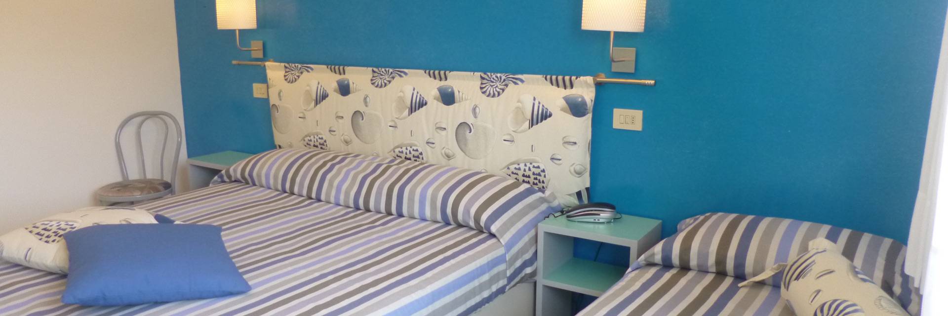 Bei Ihrem Urlaub in Riccione bietet das geräumige und renovierte Zimmer „Arcobaleno“ allen Komfort und schont auch Ihr Reisebudget.